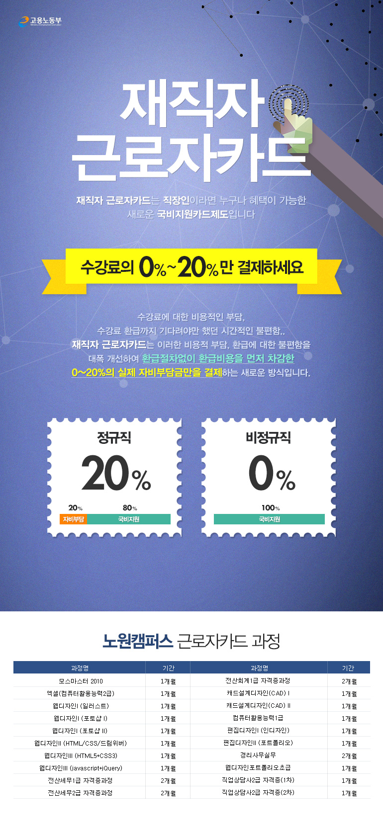 수강료 걱정없는 <재직자 근로자카드> 과정안내