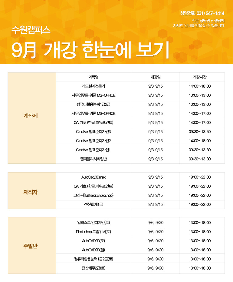 9월 개강안내